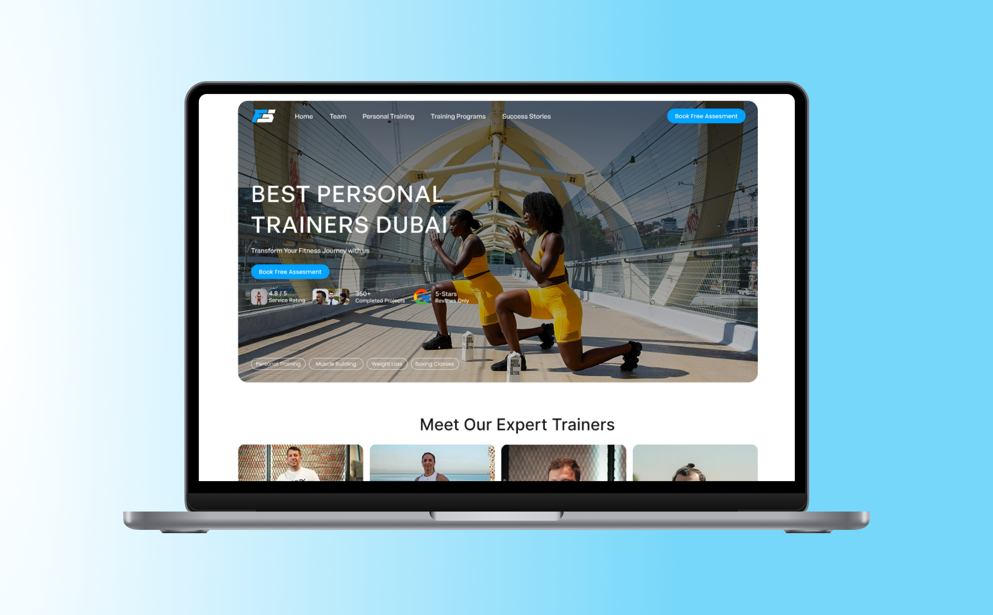 Redesign of the homepage and branding color pallete for a fitness website in Dubai